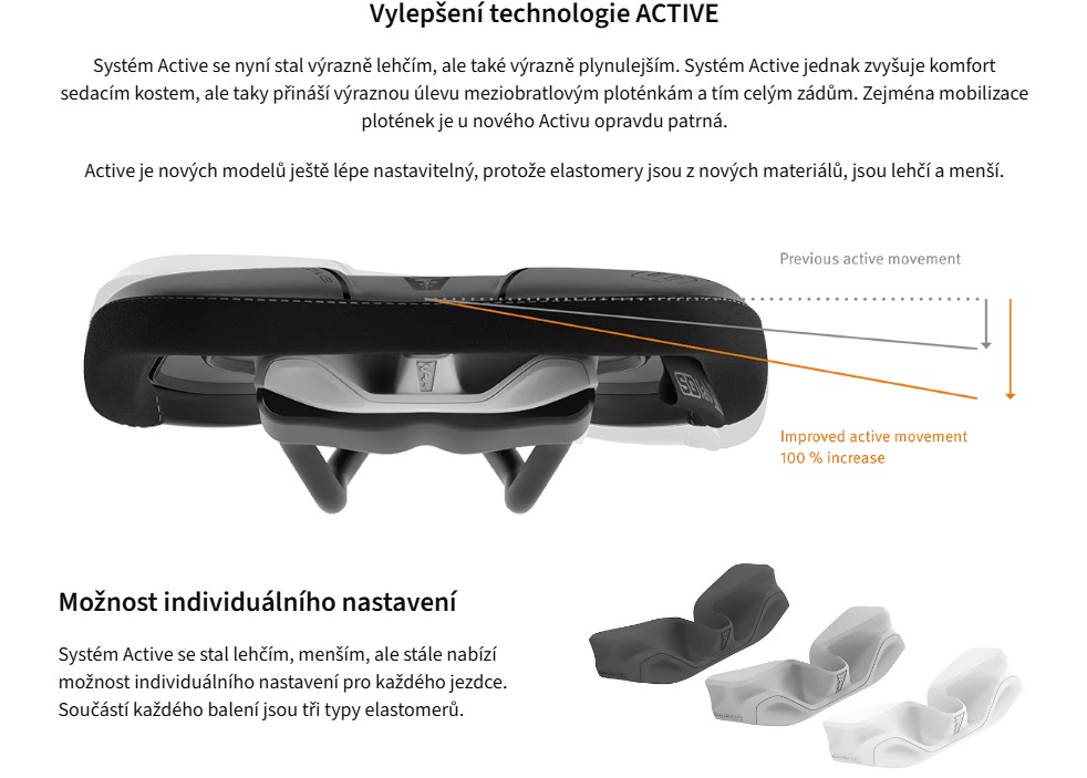 Technologie aktivního sedla SQlab umožňuje, aby sedlo následovalo pohyb při šlapání, čímž zvyšuje komfort, mobilizuje meziobratlové ploténky a minimalizuje tlak na sedací kosti.